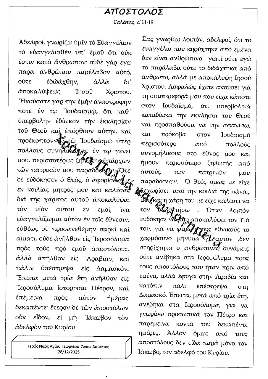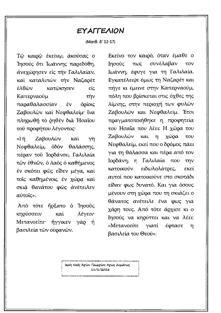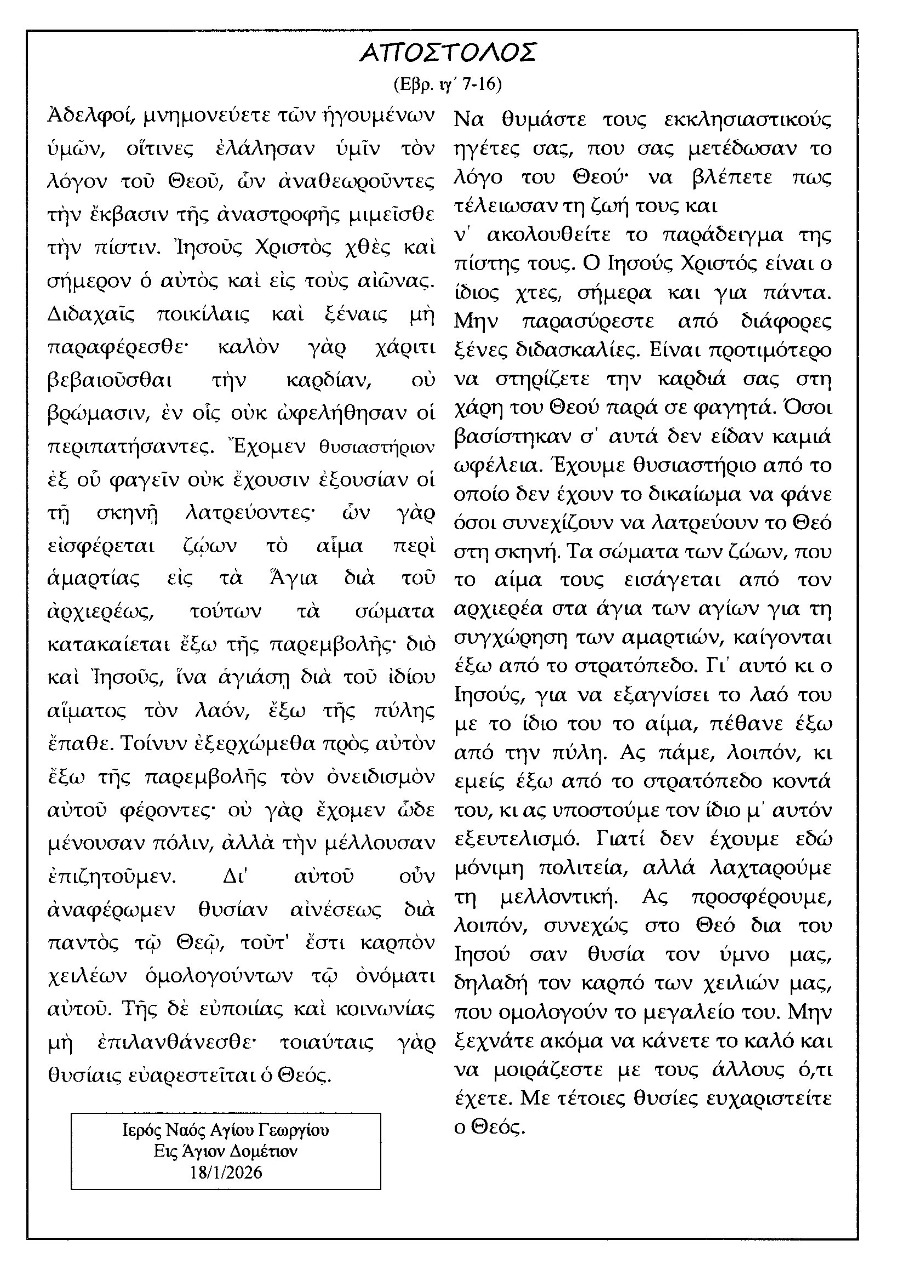 Κυριακής 18 ιαν.,2026