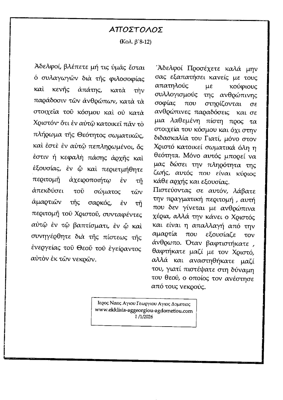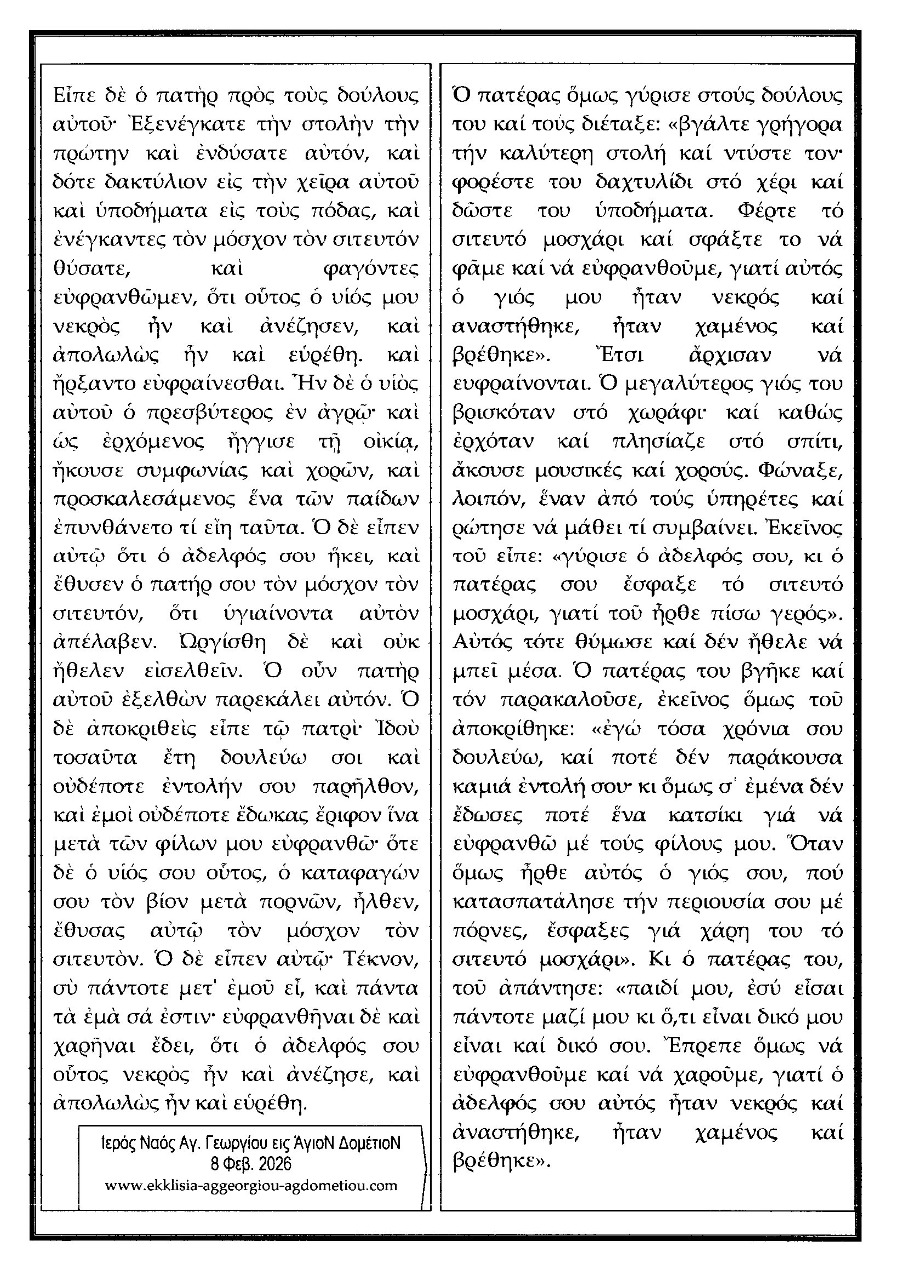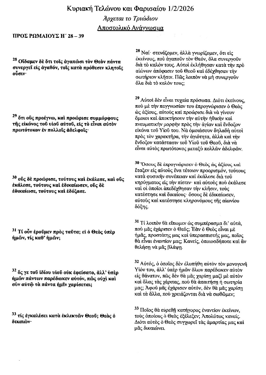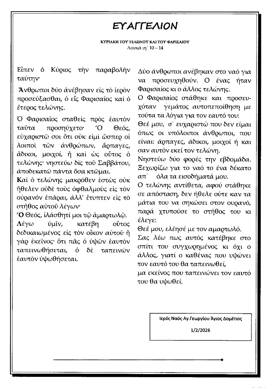Κυριακής 8 /2/2026
