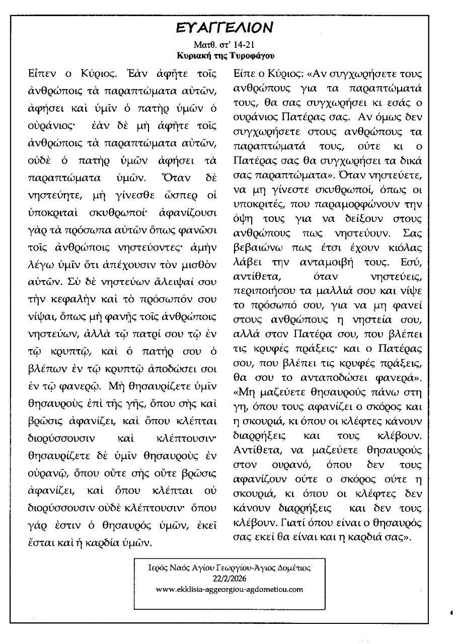Κυριακής 22 φεβ.,2026