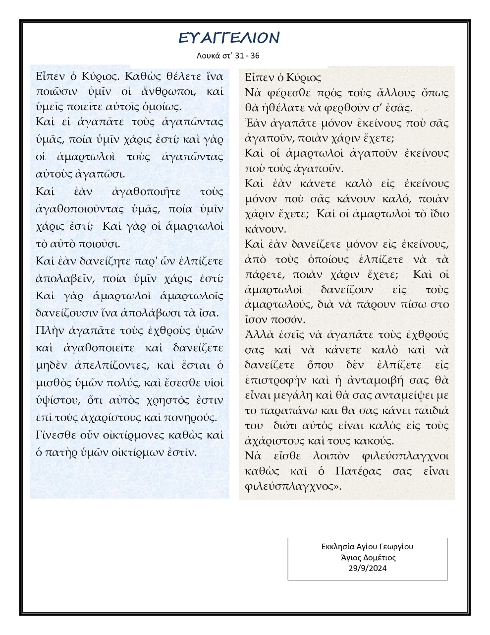 Αποστολικόν και Ευαγγελλικόν ανάγνωσμα